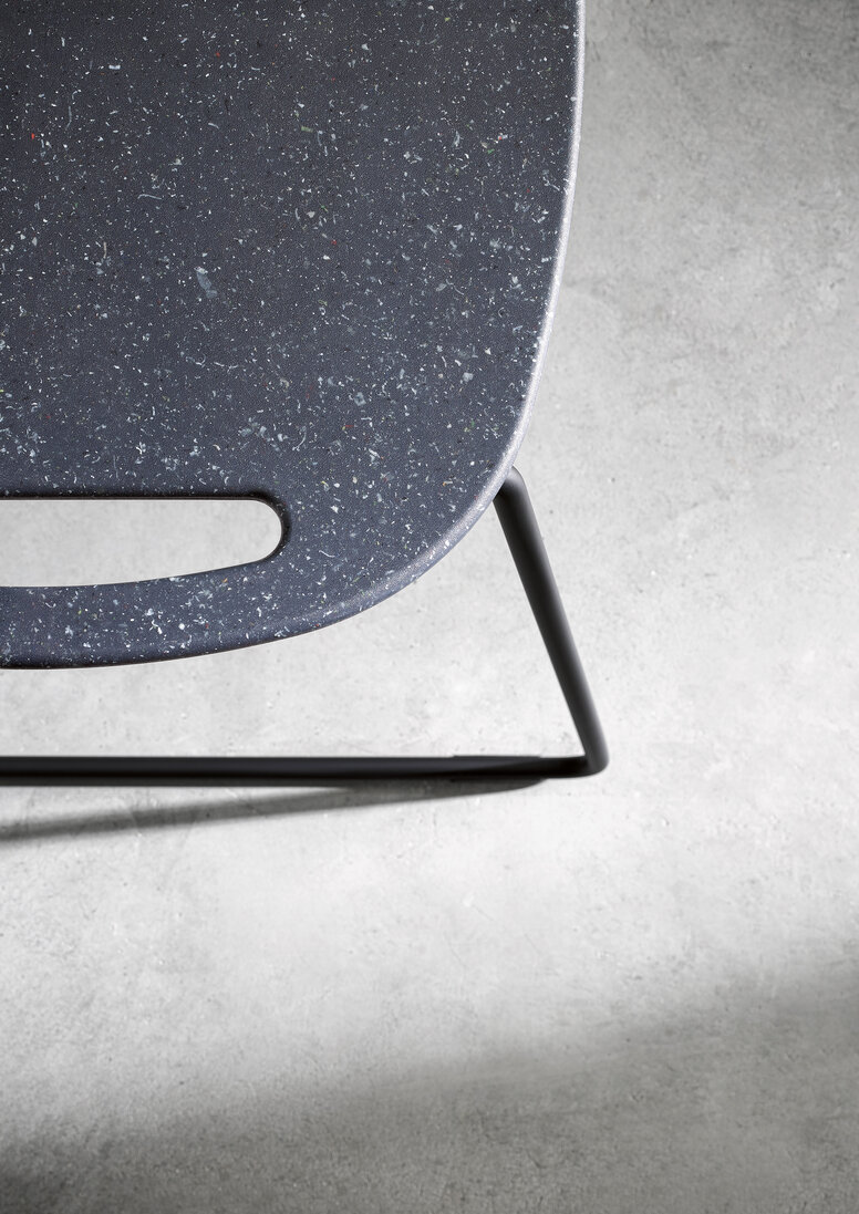 Die Hocker und Stühle der nachhaltigen Re-Sitzfamilie von HEWI zum Beispiel bestehen aus Post-Industrial Rezyklat und sind ein Statement für bestes Ecodesign. In den naturnahen Farben Waldgrün und Dunkles Granitgrau überzeugt die Re-Sitzfamilie sowohl haptisch als auch optisch mit ihrem außergewöhnlichen Look. Das Besondere dabei: Die Re-Sitzfamilie fertigt HEWI aus rezykliertem Polypropylen und rezykliertem Polyamid. Letzteres stammt aus der eigenen Produktion, während Ersteres von einem regional ansässigen Anbieter bezogen wird, was wiederum der Lieferkette zugutekommt. Dieses nachhaltige Vorgehen bedeutet aber nicht, dass das Design zu kurz kommt. Ganz im Gegenteil: Jeder Hocker ist ein Unikat, da die verwendeten Materialien einen unterschiedlichen Schmelzpunkt haben, wodurch sich im Spritzgussprozess in der Oberfläche eine melierte Struktur ergibt.