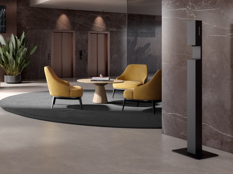Hände berührungslos desinfizieren – mittels HEWI Desinfektionsspender Säule