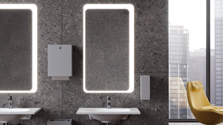 Zur Auswahl stehen Modelle mit Pulverbeschichtung in Schwarz, Grautönen und Weiß sowie Edelstahlvarianten. Die Spender zeichnen sich durch ihre Robustheit aus und eignen sich perfekt für den Einsatz in stark frequentierten Sanitärräumen. Ein Großteil der Spender steht neben manuell bedienbaren Varianten auch in einer Sensoric-Ausführung zur Verfügung. Von Seifen- und Desinfektionsmittelspender über Papierhandtuchspender und Abfallbehältern bis hin zu Hygienekombinationen in verschiedenen Größen bietet HEWI ein durchgängiges, funktionales Sortiment, das sich zudem durch höchste Designansprüche auszeichnet.