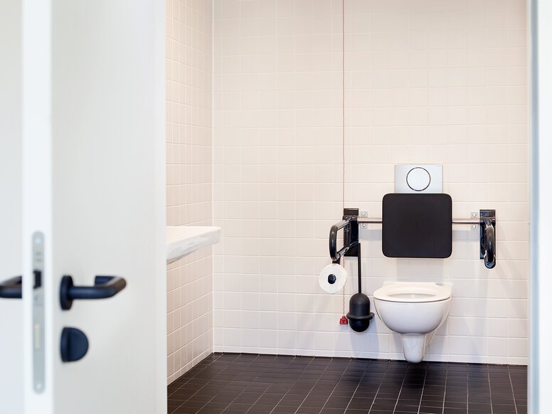 Oft seien psychische Erkrankungen die Folge körperlicher Vorerkrankungen, so Schadow, der sich seit vielen Jahren auf den Bereich der Krankenhausplanung spezialisiert hat: „Unter Umständen haben wir es also mit Patientinnen und Patienten zu tun, die stark gefährdet sind“, wodurch die Krankenhaushygiene noch einmal anders zu bewerten sei. Da eine übermäßige Reinigung aber genau das Gegenteil bewirke, sei es laut Schadow besonders wichtig, ein gutes Umfeld zu schaffen: „Eines, das heilsam wirkt und in dem man sich gut aufgehoben fühlt. Dabei spielen verschiedene Komponenten eine Rolle – auch die eingesetzten Produkte“. HEWI deckt mit seinen Lösungen in dem Klinikneubau neben der Hygienekomponente auch das wichtige Thema Barrierefreiheit ab.