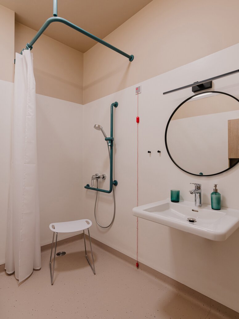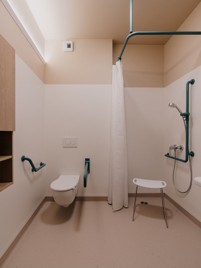 Sehr großer Wert wurde in dem Zusammenhang auf eine ästhetische wie funktionale Ausstattung der Badezimmer gelegt. Zwei wichtige Aspekte standen dabei im Vordergrund: Menschen mit Einschränkungen sollte ein Höchstmaß an Unabhängigkeit und Selbstständigkeit ermöglicht werden, gleichzeitig galt es den hohen Anspruch an das Design beizubehalten.