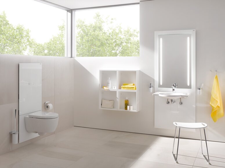 • Von Waschtisch über Accessoires bis hin zu Armaturen, Stützklappgriffen und -sitzen