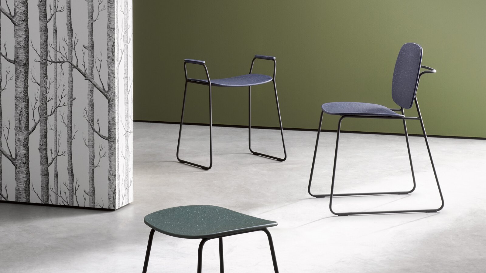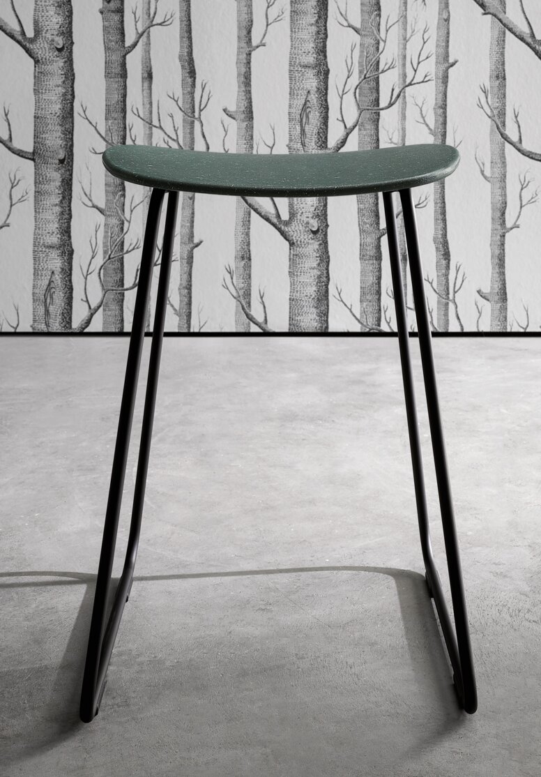 Susan Herrmann : Notre famille de sièges Re repose sur un design filigrane en tubes métalliques ronds, en version thermolaquée noire ou en chrome brillant. Pour la famille de sièges Re, les surfaces de l’assise et du dossier ainsi que les accoudoirs sont, comme nous l’avons déjà dit, en matière recyclée post-industrielle, ce qui fait de chaque meuble de salle de bain une pièce unique et constitue la plus grande particularité de ces produits.